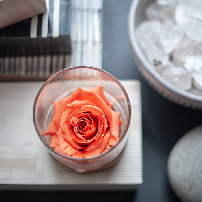 4″ FRAGRANCE FLOWER hydrated to last four months. Open the glass container and enjoy for four to six months.